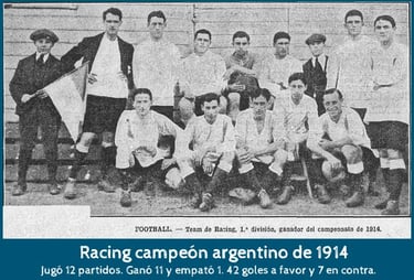 * Estamos en agosto de 1914. Racing es líder del torneo argentino y busca el bicampeonato. Además, sigue en carrera en la Copa de Competencia.