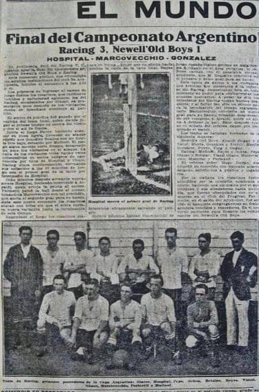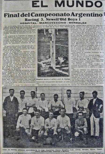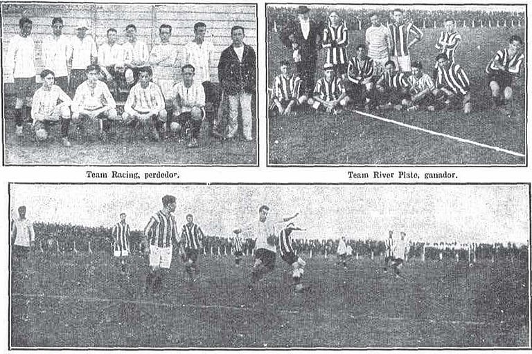 - “Uno de los partidos más concurridos del domingo, el realizado entre ambos clubs, en Avellaneda. La caballeresca rivalidad que siempre ha existido entre estos dos teams, dio lugar a que el match despertara mucho interés y así fue. Hubo muchas jugadas emocionantes por parte de ambos bandos –detalla la crónica del diario La Vanguardia–. Después de un juego lindo, donde los dos cuadros atacaron a fondo, River Plate se impuso a su adversario por dos goals a uno. Con esta derrota, Racing queda vencido por primera vez en la actual temporada”.