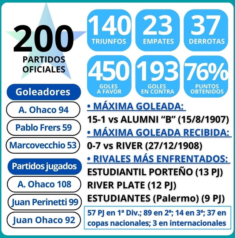 - El equipo llegó a los 400 goles oficiales, logrados en 170 partidos (lo que da un impresionante promedio de 2,3 goles por encuentro).