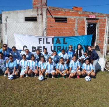 El domingo 19 de abril, LILIANA HARTVIG, LUCIANA GUARINIELLO, DENISE GOMEZ Y SOFIA CAZZULINO, en representación de la filial, se acercaron hasta la chancha de María Auxiliadora, donde jugaba el equipo de futbol femenino de RACING (local) para entregar tres balones que fueron comprados por la filial, y así posibilitar que se mejore sus prácticas, de entrenamiento y de esta manera la filial colabora con el futbol femenino de nuestra ciudad.