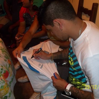 Después del partido Gustavo y allegados nos visitaron a la Sede de la Filial donde compartimos una cena informal, y nos regaló una camiseta con una hermosa dedicatoria que la pondremos colgada en la pared de la Sede.