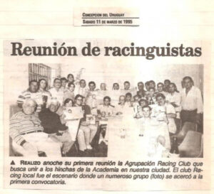 Desde esa época se viene manteniendo una gran familia entrerriana y racinguista que día a día sigue creciendo, en las buenas y en las malas mucho más.